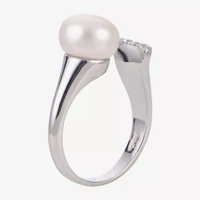 DiamonArt® Cubic Zirconia and Cultured Freshwater Pearl Sterling Silver Ring