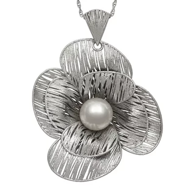 Cultured Freshwater Pearl Sterling Silver Flower Pendant Necklace