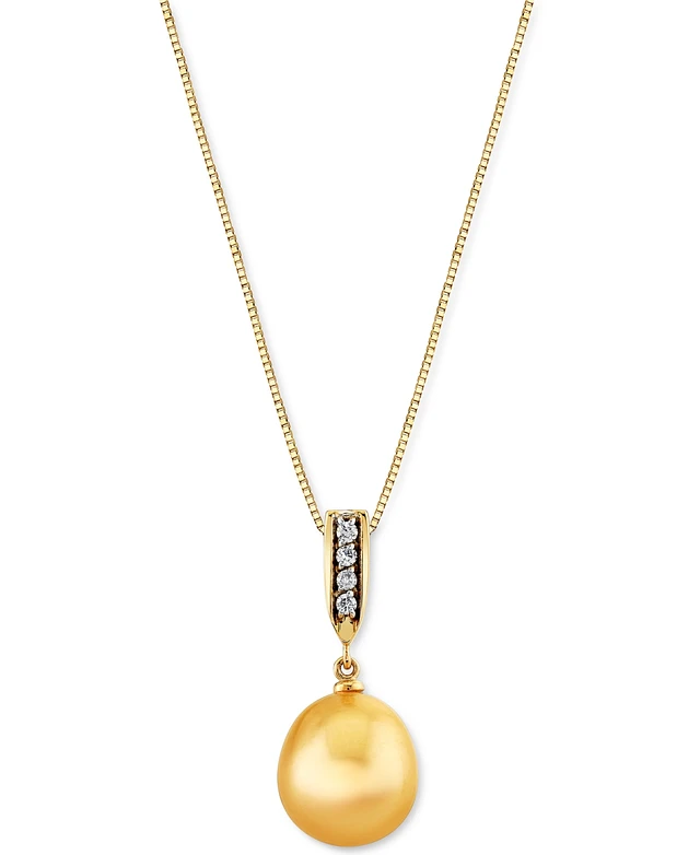 Cultured Golden South Sea Pearl (10mm) & Diamond Accent 18" Pendant Necklace in 14k Gold