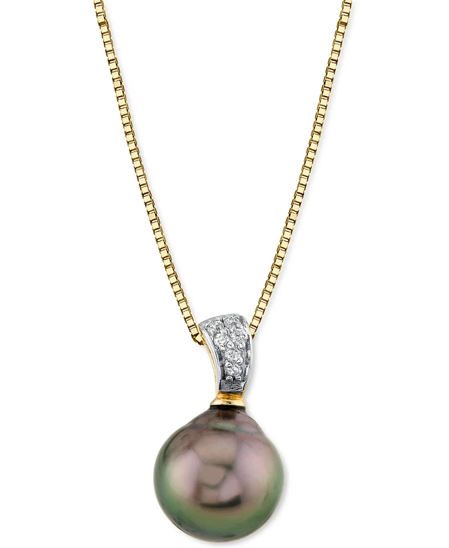 14k Gold Necklace, Cultured Tahitian Pearl (8mm) and Diamond Accent Pendant