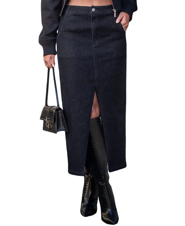 Cupshe Women's Dark Denim Split Hem Maxi Skirt