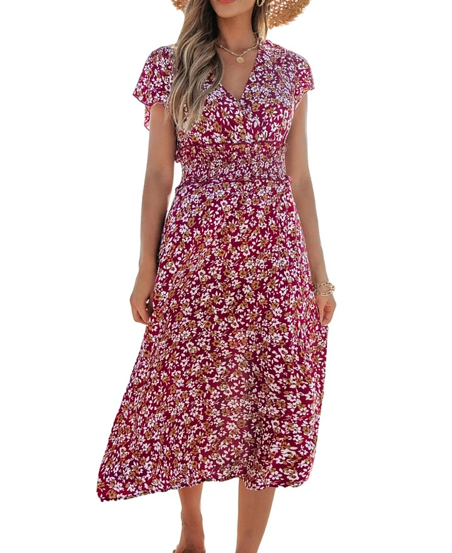 Cupshe Women's Ditsy Smocked Waist Midi Beach Dress