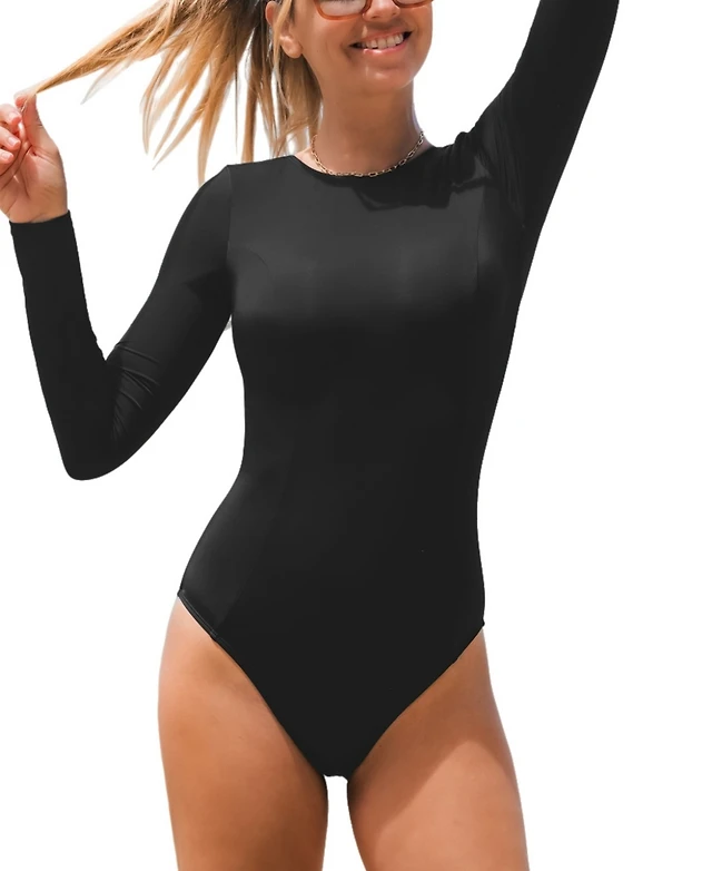 Cupshe Women's Upf 50+ Uv Protection Long Sleeve Open Back One Piece Swimsuit