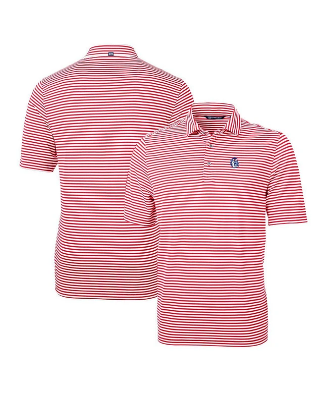 Cutter & Buck Men's Red Fresno State Bulldogs Throwback Logo Virtue Eco Pique Stripe Polo