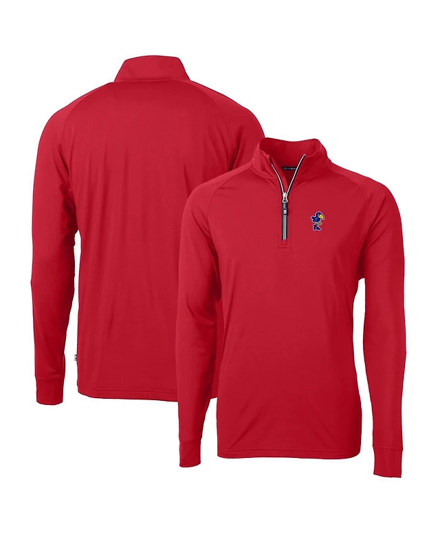 Cutter & Buck Men's Red Kansas Jayhawks Adapt Eco Knit Stretch Quarter-Zip Pullover Top