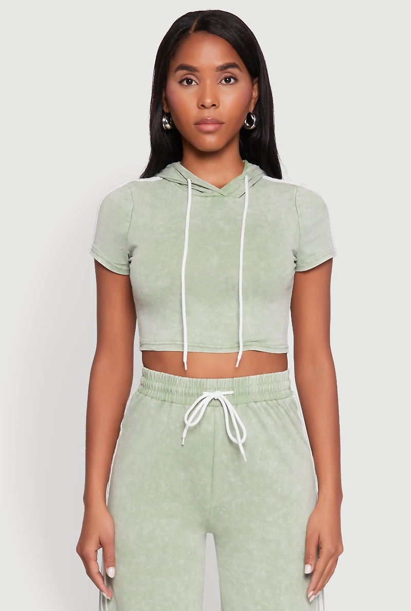 Daisy Mineral Wash Varsity Stripe Hooded Crop Top in Ponce, PR