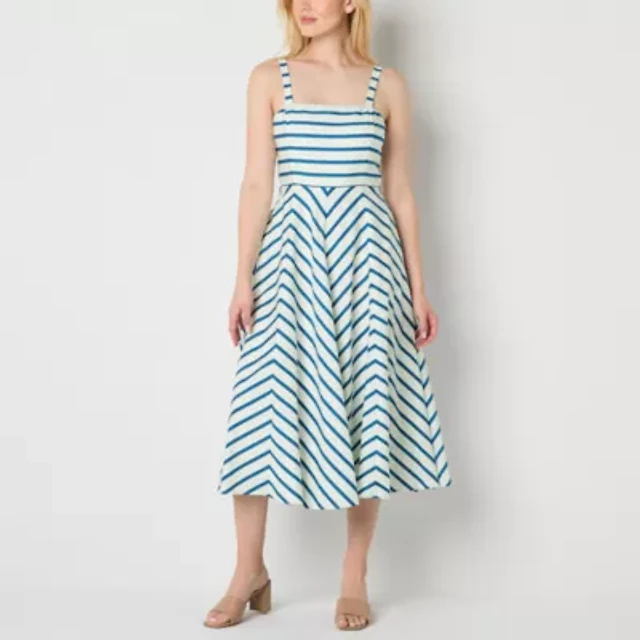 Danny & Nicole Womens Sleeveless Striped Midi Fit + Flare Dress