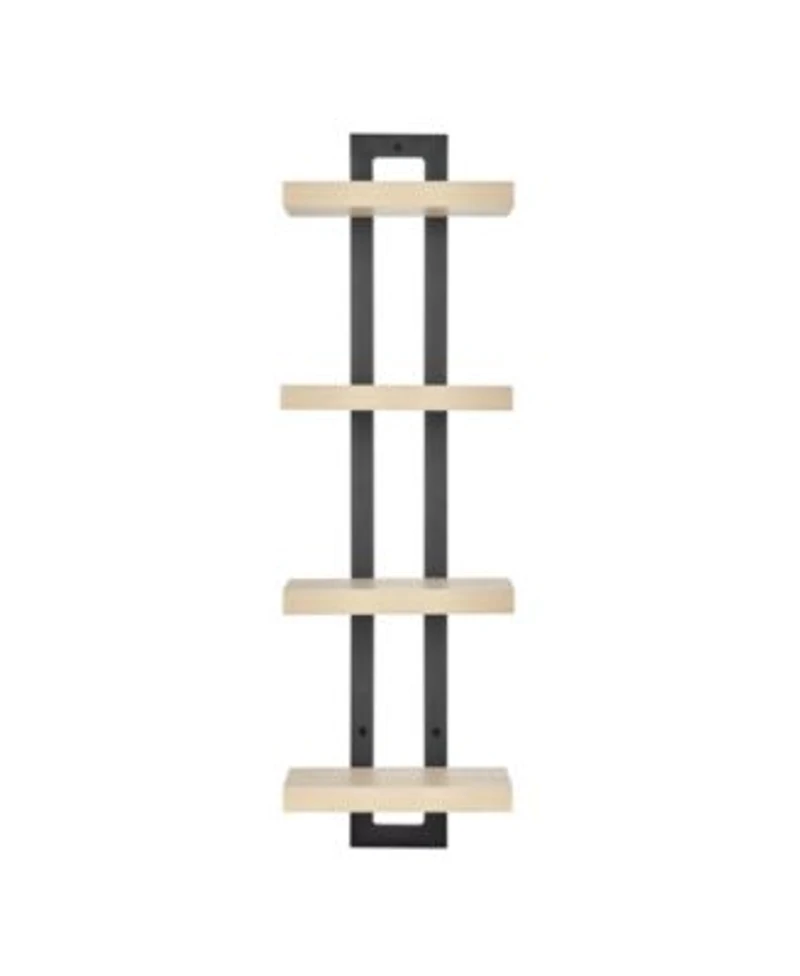 The Danya B. 4-Tier Ladder Bracket Floating Wall Shelves provides a chic, contemporary way to organize and display your favorite books and decor. Featuring four tiers of chic Mdf shelves floating on a modern black metal ladder bracket, this wall unit shelf is ideal for highlighting and organizing your favorite items in style. The low profile of this unique ladder shelf makes it ideal for displaying items in any small space, such as hallways, entryways, or dorm rooms. The elegant and contemporary design of this metal bracket and Mdf shelving unit is also ideal for showcasing your favorite home decor, art, and other trinkets around your home or apartment. This wall shelf unit is available with White Birch or Walnut finish shelves combine both options to maximize your storage and add visual interest to your walls. Add a touch of whimsy to your walls with our 4-Tier Slim Ladder Bracket Floating Metal Frame Wall Shelves.