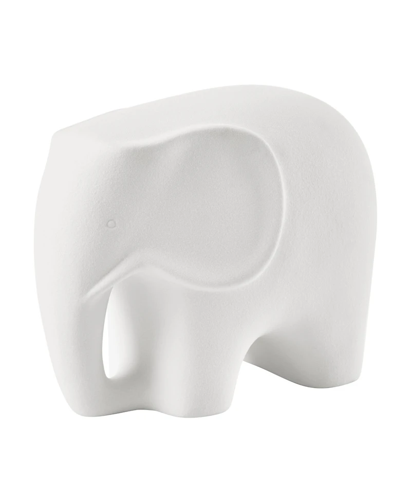 The Hans White Abstract Elephant Matte Ceramic Sculpture beautifully merges modern artistry with timeless symbolism, offering a piece that feels both sophisticated and heartwarming. Long celebrated as a symbol of wisdom, strength, and good fortune, the elephant brings positive energy and emotional warmth to your space. Its neutral matte white tone and clean lines make it a versatile accent that complements a wide range of interiors—from modern and Scandinavian to transitional or boho-inspired decor. Perfect for children s rooms and nurseries, this charming elephant adds a touch of whimsy and calm to little ones spaces, offering a meaningful decorative accent that parents and children alike can cherish. Display it on a bookshelf beside favorite storybooks, on a dresser among keepsakes, or on a nursery shelf as a subtle symbol of protection and love. Equally beautiful in more grown-up spaces, this sculpture can serve as a striking statement piece on a mantel, console, or office shelf.