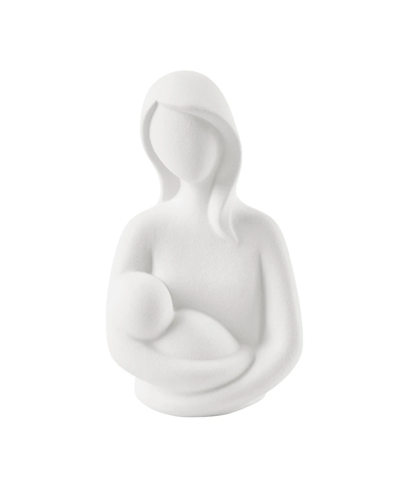 The Hans White Abstract Mother Holding Baby Matte Ceramic Sculpture captures the intimate and timeless bond between mother and child with graceful simplicity. Subtle contours, like the flowing outline of the mother s hair and the curve of her arms, add softness and warmth to the minimalist silhouette, creating a sense of peace and protection. Its neutral matte white tone and fluid form blend effortlessly with a range of interiors—from modern and transitional to Scandinavian and bohemian styles—bringing a quiet elegance wherever it s placed. Display it on a nightstand, bookshelf, or entryway table to celebrate the nurturing spirit that defines family and home. It also makes a touching addition to a nursery or child s room, offering a serene symbol of love and comfort. More than just decor, this sculpture serves as a heartfelt tribute to the enduring connection between a mother and her child.