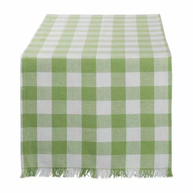 Design Imports Bright Green Heavyweight Check Fringed Table Runner
