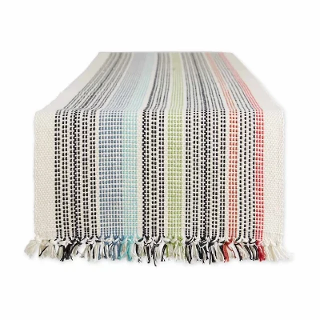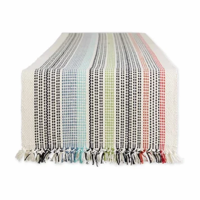 Design Imports Dobby Striped Fringe Ribbed Table Runners
