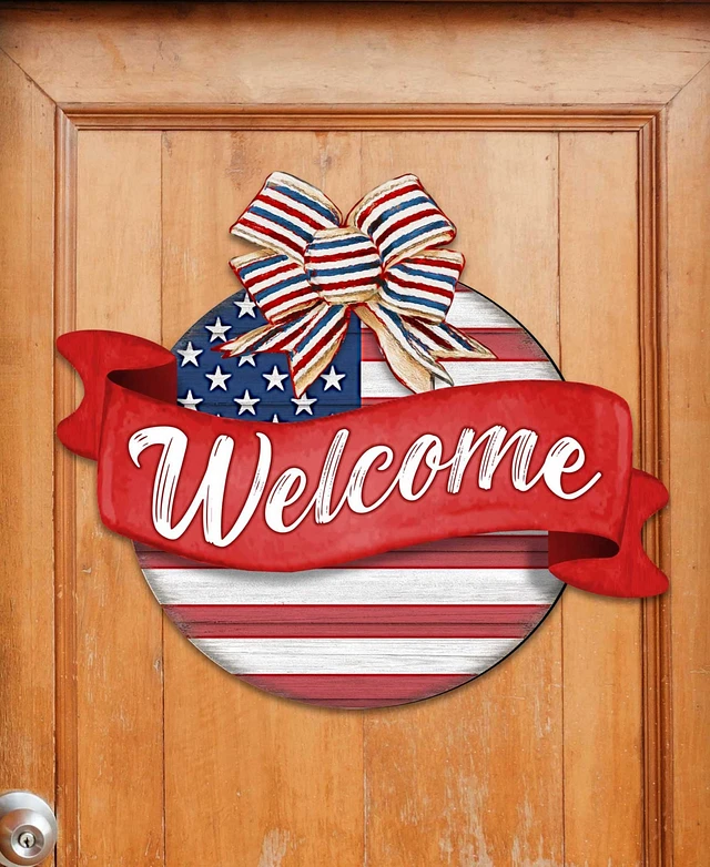 Designocracy Holiday Door Decor Wooden Welcome Sign American Flag Porch Wreath G. DeBrekht