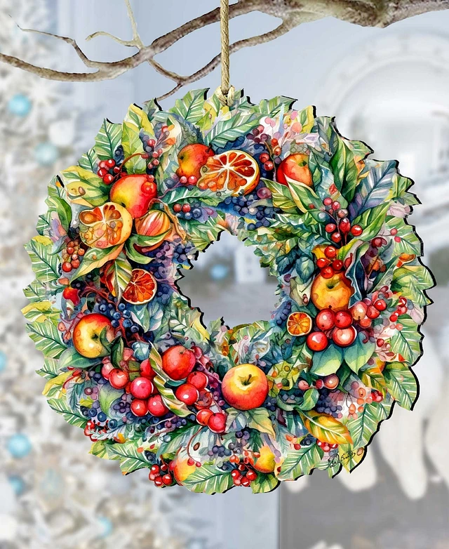 Designocracy Holiday Wooden Ornaments Summer Harvest Fruit Wreath Home Decor G. DeBrekht