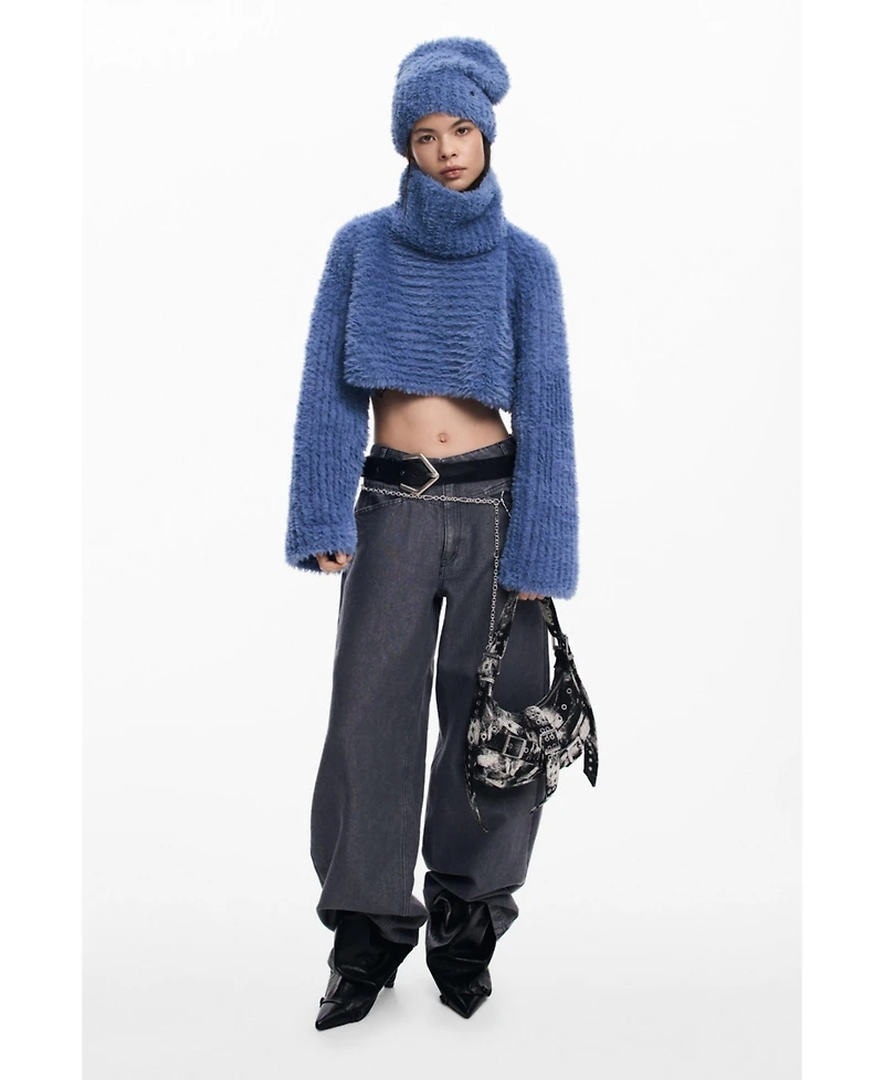 Pack with beanie and cropped sweater made of polyester fabric with high neck and long sleeves. Short and dense design in soft knit.