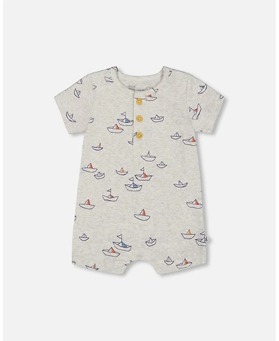 Deux par Deux Baby Boys Organic Cotton Printed One-Piece Romper Paper Boats