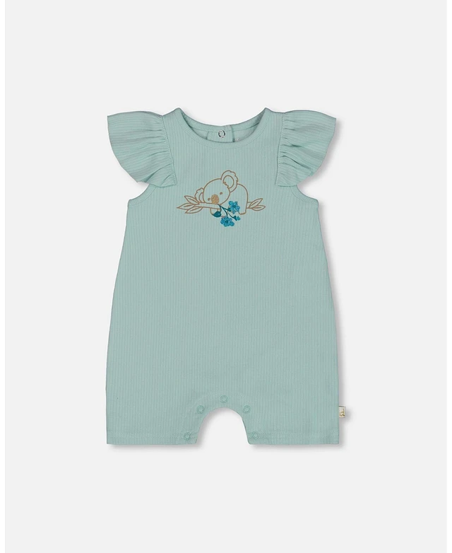 Deux par Baby Girls Organic Cotton Romper With Frills Light Blue