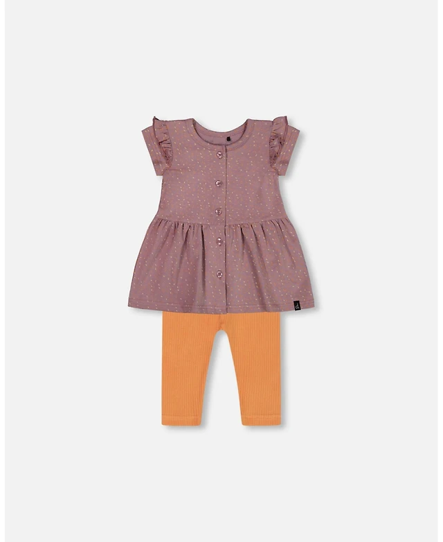 Deux par Baby Girls Printed Organic Cotton Dress And Solid Leggings Set Orange Purple