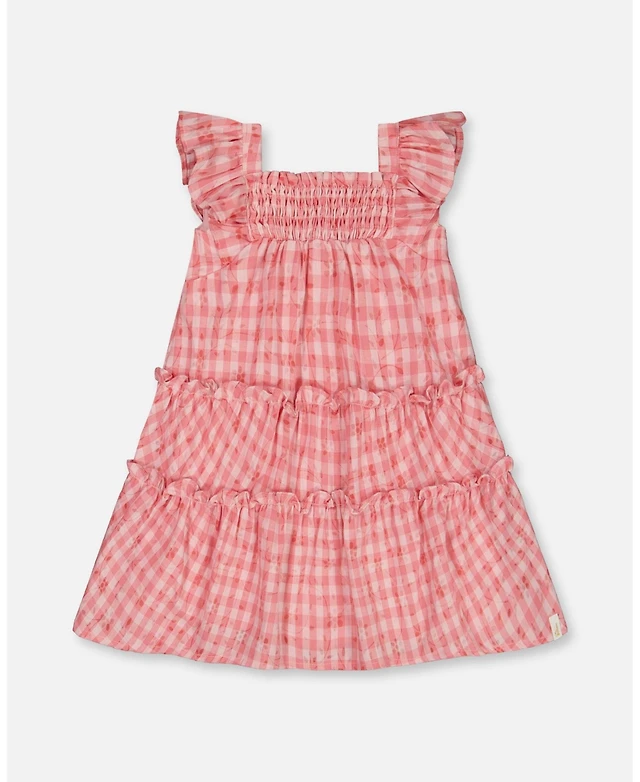 Deux par Baby Girls Smocked Layered Dress With Frill Sleeve Checked Pink