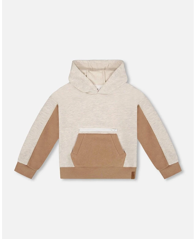 Deux par Big Boys French Terry Color Block Pullover Hoodie Sweatshirt Beige And Off-White