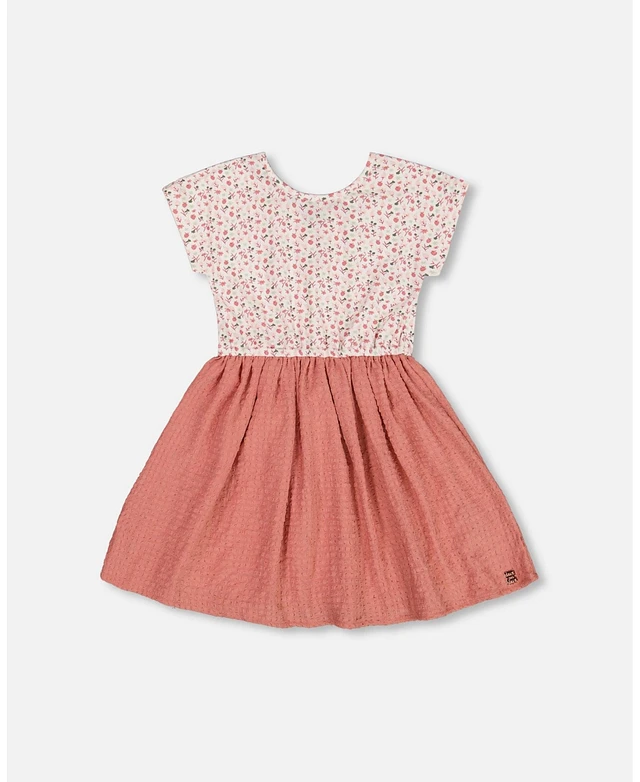 Deux par Toddler Girls Bi-Material Dress With Printed Top Small Flowers And Pink - Toddler|Child