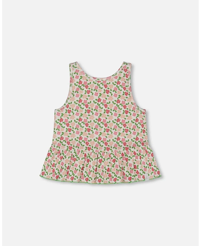 Deux par Big Girls Printed Tank Top With Flounce Small Flowers On White Background