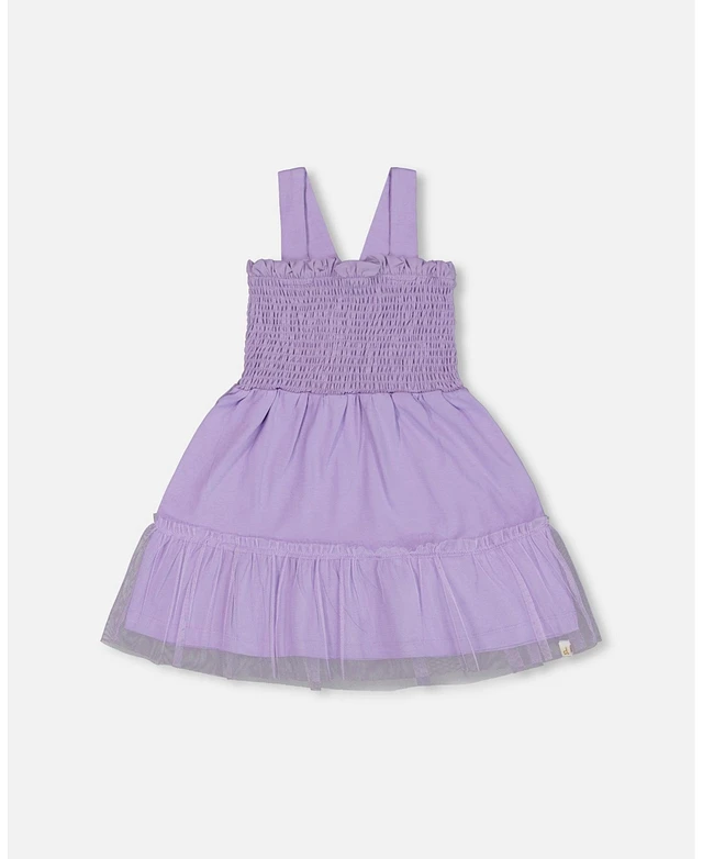 Deux par Deux Toddler Girls Smocked Organic Cotton Dress With Mesh Frill Lilac - Toddler|Child