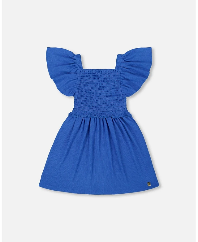 Deux par Big Girls Textured Smocked Dress Royal Blue