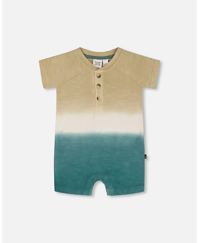 Deux par Deux Baby Boys One-Piece Romper Gradient Beige And Teal