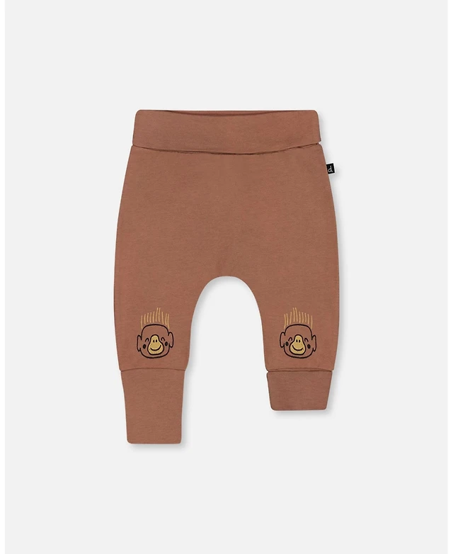 Deux par Deux Baby Boys Printed Organic Cotton Evolutive Pant Brown And Monkeys