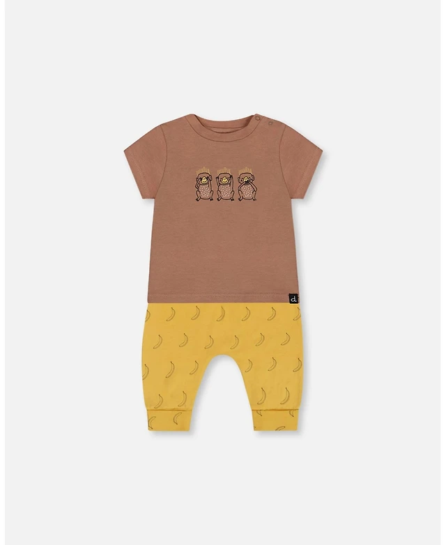 Deux par Deux Baby Boys Printed Organic Cotton Top And Pant Set Yellow Bananas And Brown