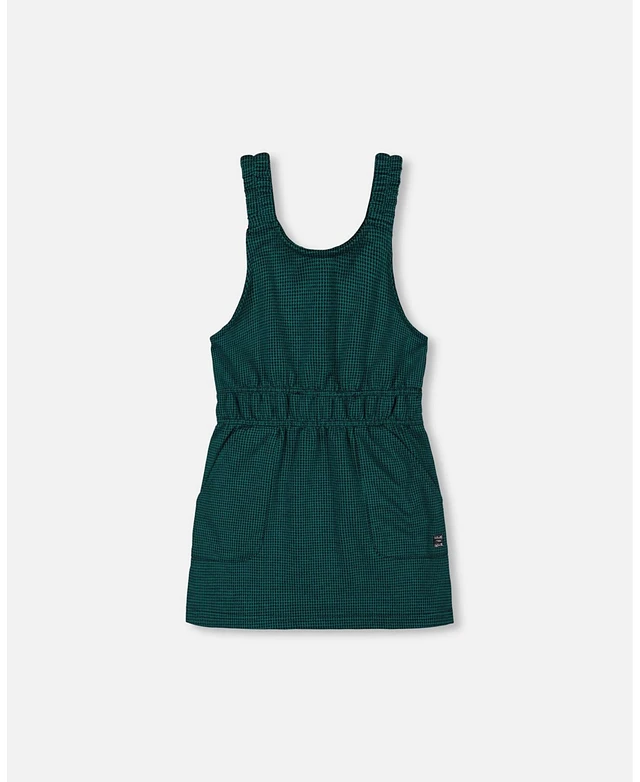 Deux par Deux Big Girls Jumper Dress With Pocket Houndstooth Teal