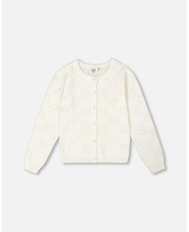 Deux par Deux Big Girls Pointelle Knit Cardigan Sweater White