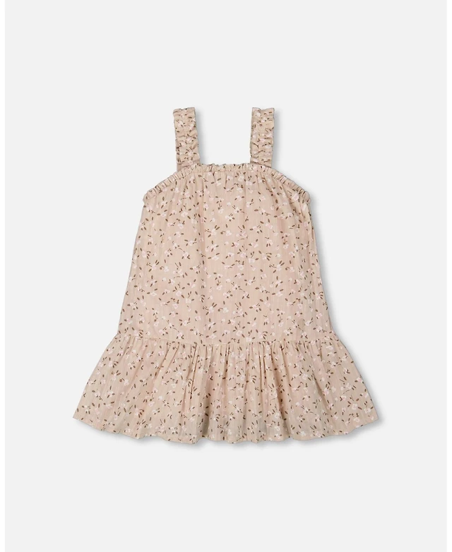 Deux par Deux Big Girls Printed Eyelet Dress Beige And Small Flowers