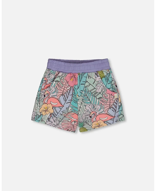 Deux par Deux Big Girls Printed French Terry Short Lilac Tropical And Pink Flamingos