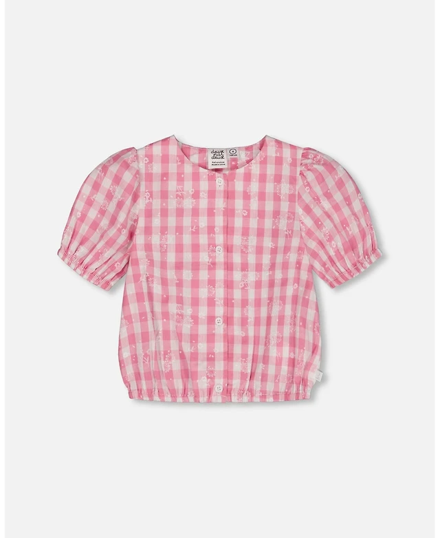 Deux par Deux Big Girls Puff Sleeve Top Pink And White Checks