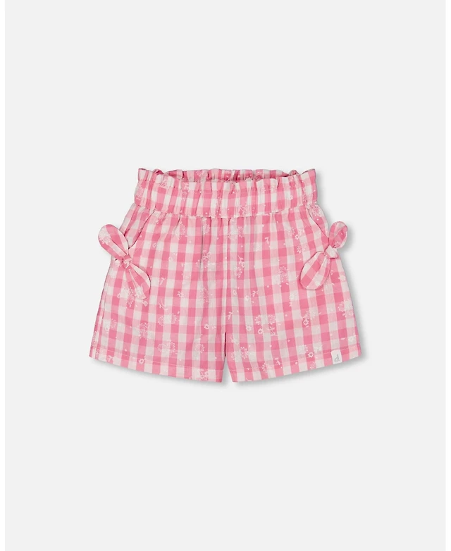 Deux par Deux Big Girls Smocked Waist Short With Knots Pink And White Checks