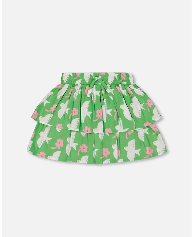 Deux par Deux Big Girls Tiered Elastic Waist Skirt Green With White And Pink Bird