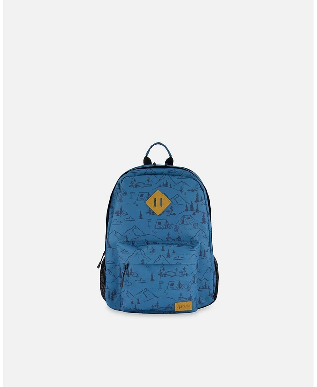 Deux par Deux Boy Backpack Blue Camping Print - Child