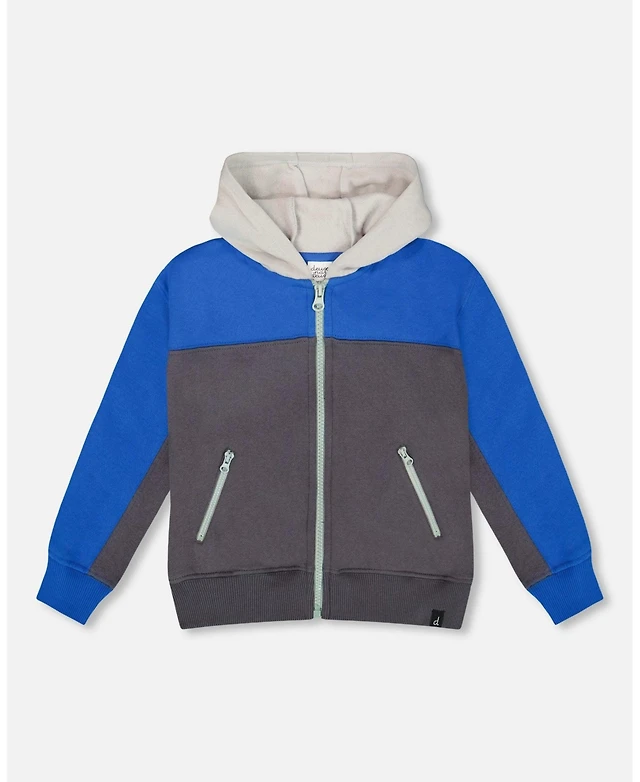 Deux par Boy Color Blocked Zip Front Fleece Hoodie Dark Gray