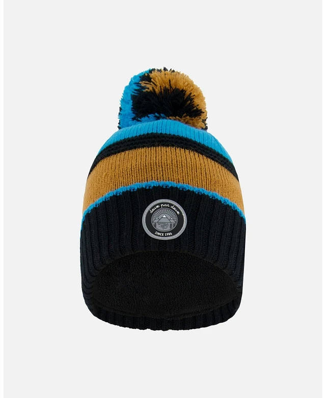Deux par Deux Boy Winter Knit Hat with Pompom and Lining Black and Blue - Toddler|Child