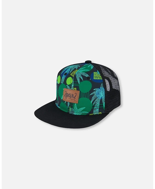 Deux par Deux Boy Printed Cap Green Jungle On Black - Toddler|Child