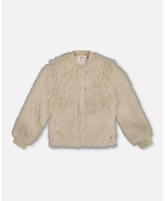 Deux par Deux Girl Short Faux Fur Coat Beige - Child
