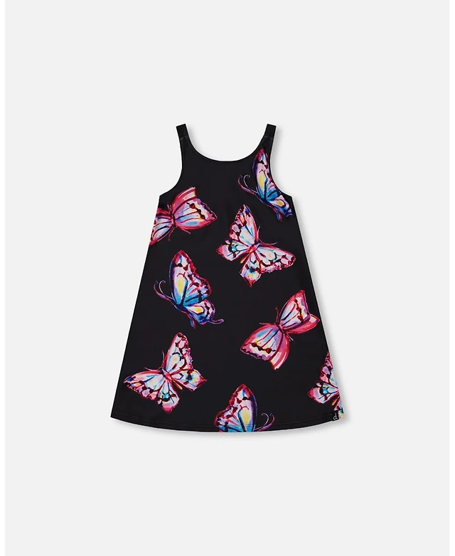 Deux par Deux Girl Printed Beach Dress Black And Multicolored Butterflies - Toddler|Child
