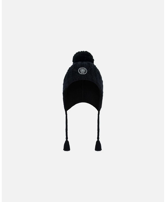 Deux par Deux Boy Lined Winter Peruvian Knit Hat with Pompom Black - Toddler|Child