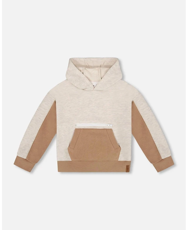 Deux par Deux Toddler Boys French Terry Color Block Pullover Hoodie Sweatshirt Beige And Off-White - Toddler|Child