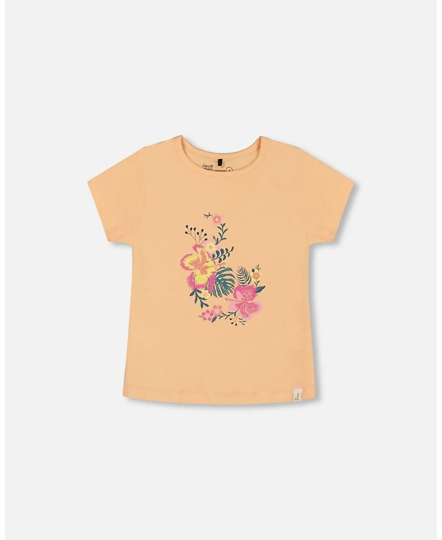 Deux par Deux Toddler Girls Organic Cotton Tee Light Orange And Flowers - Toddler|Child