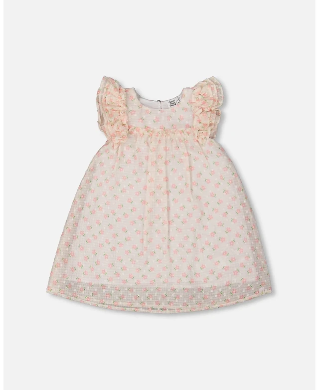 Deux par Deux Toddler Girls Printed Dress With Frills Pale Pink And Flowers - Toddler|Child