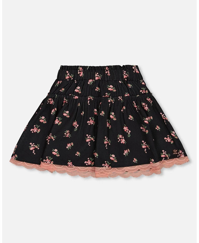 Deux par Little Girls Printed Flowers Flare Viscose Skirt Black - Toddler|Child