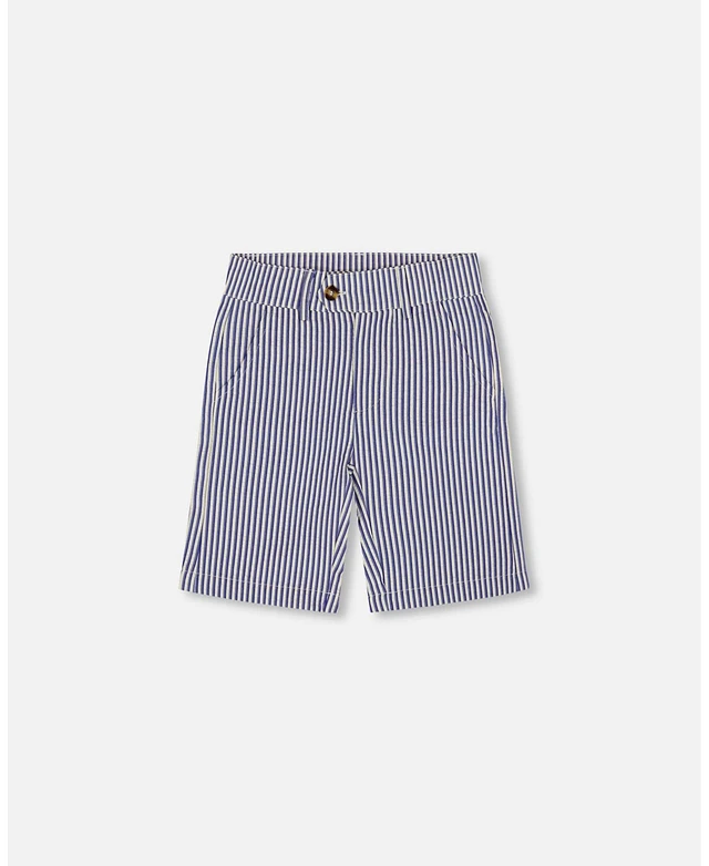Deux par Toddler Boys Slant Pocket Bermuda Shorts Navy Blue Striped - Toddler|Child